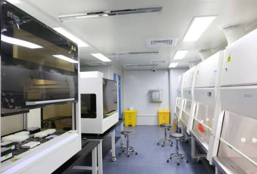 1月29日当天,武汉东湖区政府快速响应落实,东湖高新区提供场地支持,华大与建设单位中交二航局对接,完成实验室场地勘察。1月30日,华大基因完成实验室设计,中交二航局于1月31日正式启动实验室施工,在中交二航局和上海诺瑞的279名员工自愿加班、全力奋战下,仅用5天时间,完成实验室主体施工。
