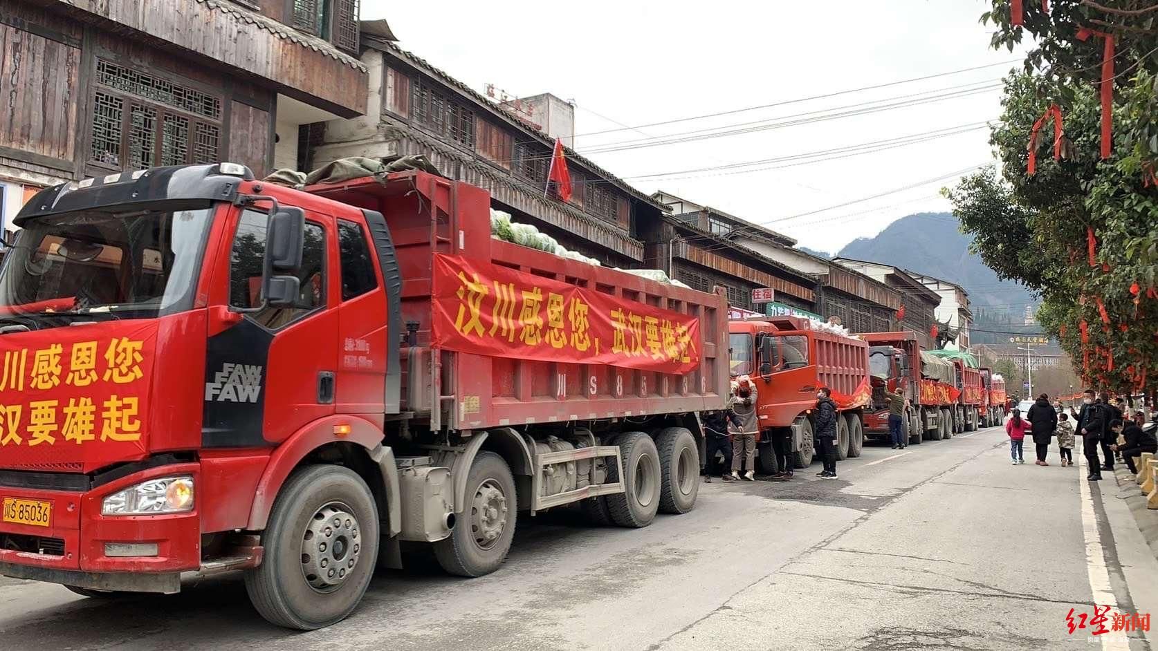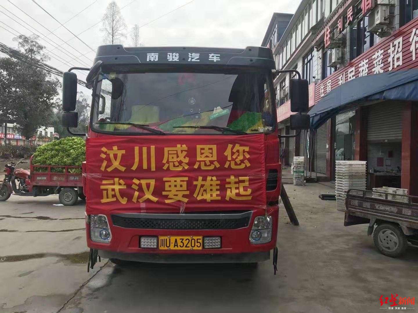 2月6日,这张照片刷爆了武汉人的朋友圈。图上这辆大卡车就来自汶川,和它一起抵达武汉的一共有6辆车,车上满满当当装着100吨新鲜蔬菜。
