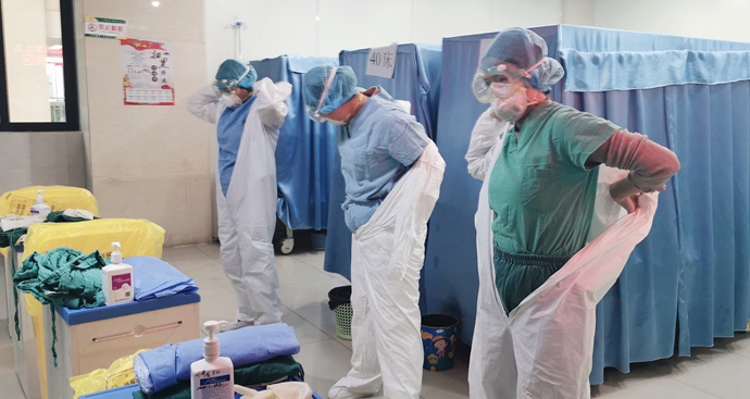 来到武汉后,佘沙和同伴们入驻武汉大学人民医院东院区这所重症定点医院。佘沙负责协助总务和医院感染控制的工作,她把自己的工作比喻成守门员,她要为大家把好这道门,守好这一关。“他们能够平平安安健健康康,才能够到临床去救治更多的人”。