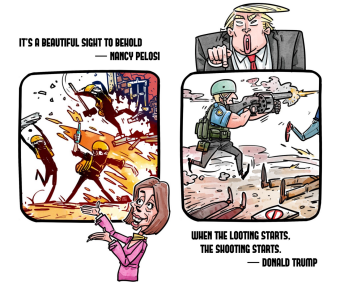 美国政客对国内国外骚乱场景的不同态度 ,对于国内骚乱举枪应对,对于香港暴徒的恐怖行径则举双手双脚支持。(总台记者 郑言)